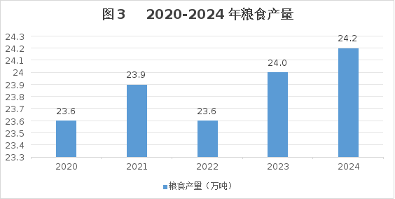 全年糧食播種面積88.6萬畝,同比增長0.3%。糧食綜合單產273.7公斤/畝,同比增長0.6%。全年糧食產量24.2萬噸,同比增長1.0%。其中,夏糧產量7.7萬噸,增長1.5%;秋糧產量16.5萬噸,增長0.7%。全年谷物產量10.4萬噸,同比增長0.6%。其中,稻谷產量1.2萬噸,下降2.9%;玉米產量9.1萬噸,增長1.1%;小麥產量23.3噸,下降77.6%。油料產量1.5萬噸,增長2.7%。茶葉產量920.7噸,增產0.3%。
